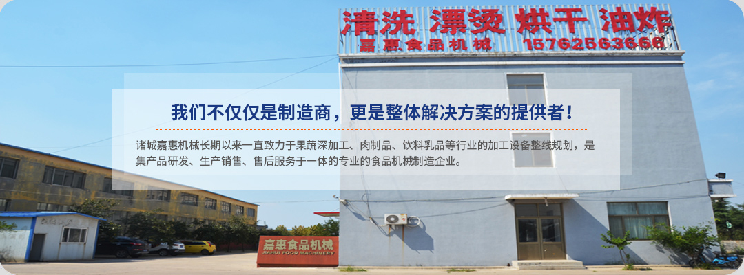 諸城市嘉惠食品機械有限公司始建于2004年,是一家集產(chǎn)品研發(fā)、生產(chǎn)銷售、售后服務于一體的專業(yè)食品機械制造廠家。公司位于中國山東諸城市,其地理位置優(yōu)越,交通便利,是山東半島重要的交通樞紐,且食品機械制造業(yè)十分發(fā)達,規(guī)模強大,基礎(chǔ)雄厚,配套能力強。公司管理規(guī)范,擁有雄厚的技術(shù)實力和高素質(zhì)的技術(shù)工人,配備有專業(yè)的工程師對客戶解疑答惑,完善的售后服務體系,為客戶提供設備安裝調(diào)試、人員培訓、技術(shù)改造等多項技術(shù)服務,并設有配件供應中心,保證設備配件的及時供應。公司以市場為導向,以客戶需求為中心,以致力解除勞動力和降低